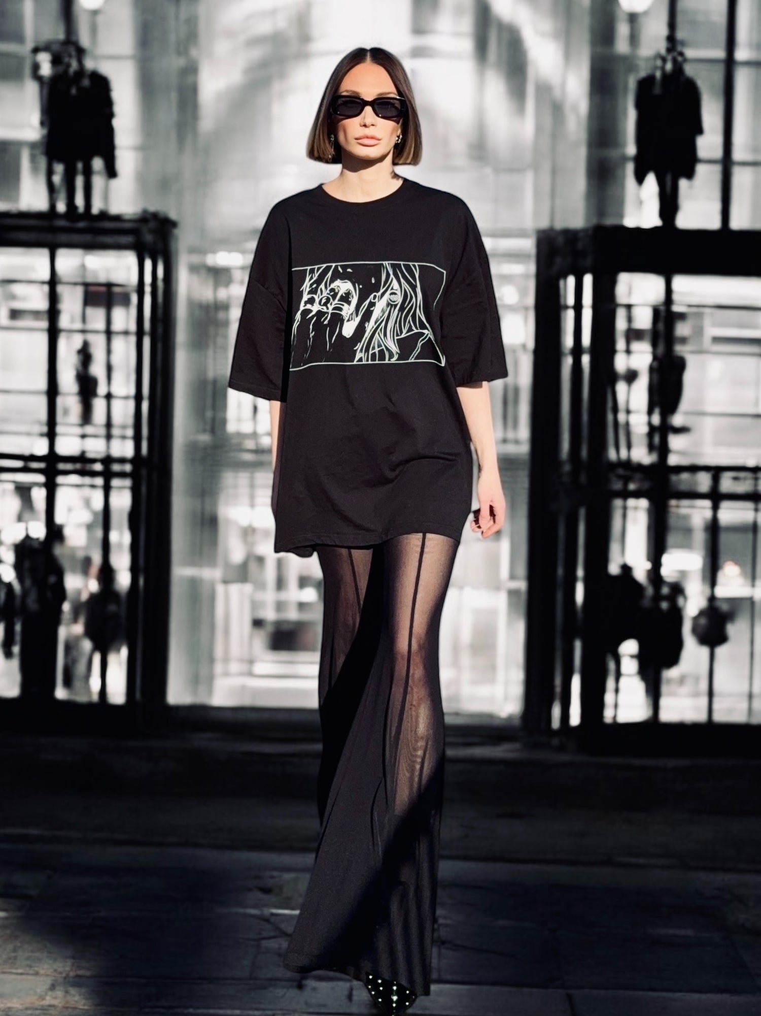 I Like You Oversized Deep Drop Shoulder Tee In Black